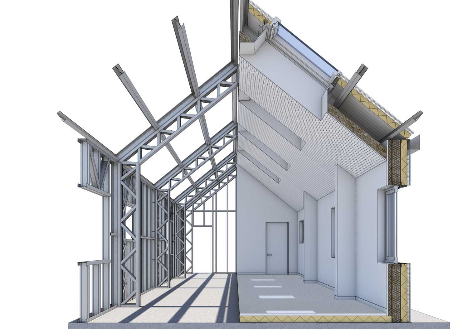 Le case LSF sono costruite con acciaio leggero come materiale strutturale. I profili in acciaio sono rivestiti in modo da poter creare maggiore rigidità alla struttura e supportare i materiali isolanti e impermeabilizzanti, nonché le necessarie finiture interne ed esterne.